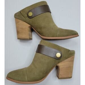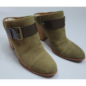 Linea Paolo Logan Green Burnished Nubuck Suede Booties 3" Chunky Heel Size 7M