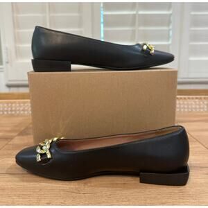 Linea Paolo Natalie Black Flats Size 7 NWOB Gold Chain Detail Unique Heel