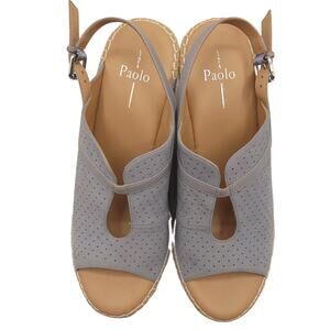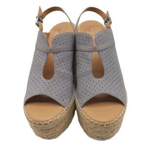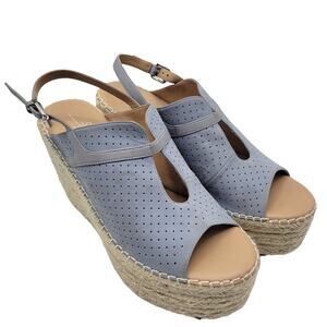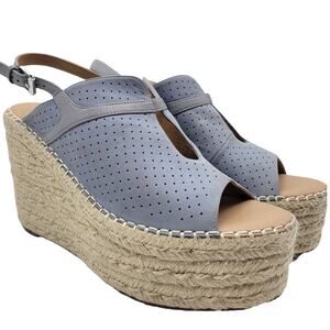 Linea Paolo Sandals Everly Wedge Peep Toe Suede Espadrille Blue Size 10