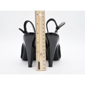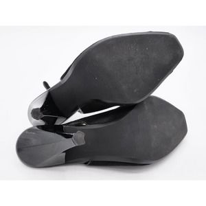 Linea Paolo Sandals Womens 7 Black Suede Buckle Bow Cone Heel Slingback Peep Toe