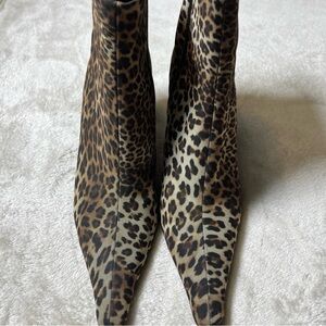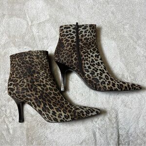 Linea Paolo Size 7.5 Bootie Stiletto Heel Leopard Print Zipper Close Pointed Toe
