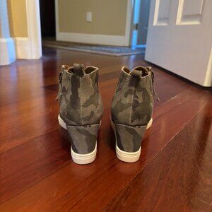 A perforated upper amplifies the street-chic style of this modern low-wedge sneaker.