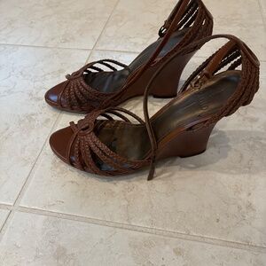 Barely worn Linea Paolo wedges. Beautiful brown color with braided detail. 4inch wedge