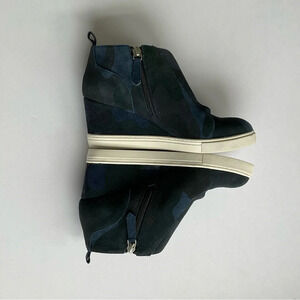 Linea Paolo Felicia Women’s Wedge Sneaker 6M Blue Camo Suede Ankle Zip