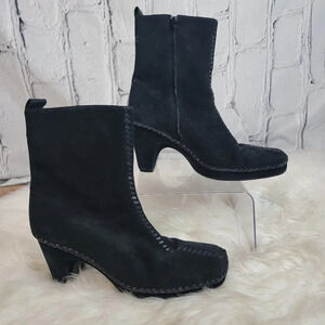 Linea Paolo Womens Suede Leather Square Toe Chunky Heel Black Mid-Calf Boot Chic Condition: Preloved with minimal signs of gentle wear - VERY GOOD! Brand: PAOLO Size: 8, 8M, 8 M Color: Black Material: Leather, Suede Heel Height: 3.5" Shaft Height: 6.5" Circumference: 10" Details: - Black bold stitch details - Suede - Mid calf boot - Full inside zipper - Square toe - Parisian, chic, casual, effortless, simple, breezy, elegant, timeless, classic, monochrome, neutral, clean, clean girl, aesthetic, french girl, sophisticated, natural, femme, feminine, minimal, simple, modern, classy, classic, timeless, neutral, monochromatic Same or next day shipping! Offers welcome Bundle and save $ automatically! Smoke Free environment MCB.1423 Linea Paolo Womens Suede Leather Square Toe Chunky Heel Black Mid-Calf Boot Chic