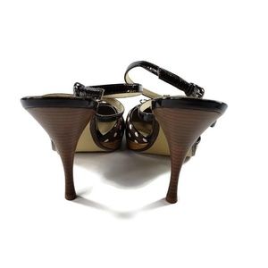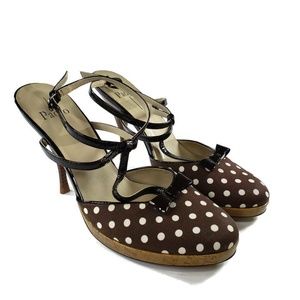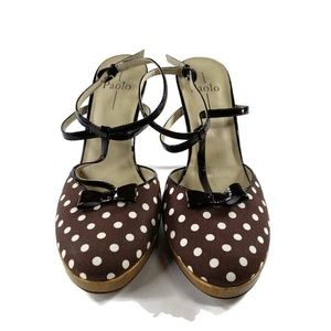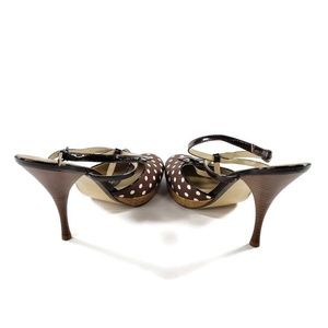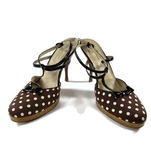 Paolo Linae Women's T Strap Sandals Coffee Polka Dot Caged Slim Heel Bow 10 M New