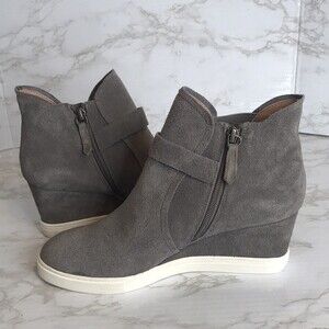 Linea Paolo ladies gray suede wedge ankle boots sneakers shoes size 9