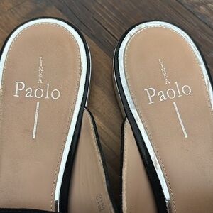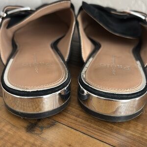 Linea Paolo Ace Pointed Toe silver buckle Leather Suede slip on Mules