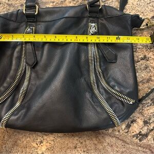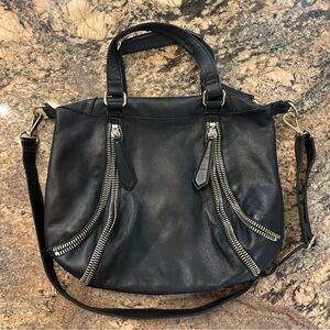 Edgy, fun, EUC Linea Pella hand bag purchased at Nordstrom. Beautiful, soft leather with zipper embellishments. Can wear cross body, shoulder or satchel style.