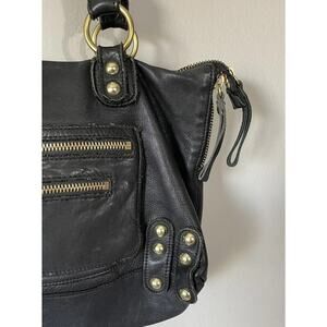 Linea Pelle Black Leather Front Zippers Luxury Gold Hardware Purse Bag READ