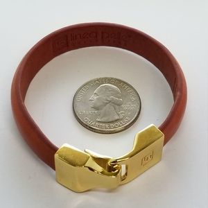 Very nice Linea Pelle Collection goldtone hook clasp and genuine leather ladies designer bracelet. Excellent condition