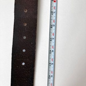 Size Large - Linea Pelle brown genuine leather belt with brass buckle and tiny brass studs in excellent condition. Boho style perfect for wearing around the hip.