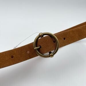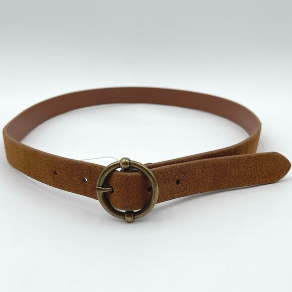 Linea Pelle | NEW Cognac Brown Skinny Suede Belt Round Circle Brass Buckle