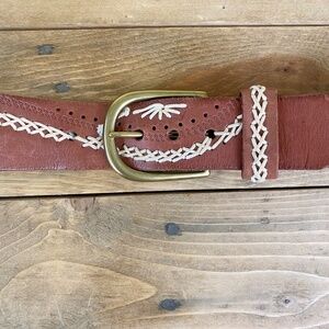 Linea Pelle Vintage Leather belt Hand Stitched design Pristine 32