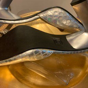 Linea Roma Silver Embossed (Snake) Leather Heels