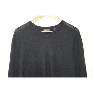 Linea Rosso Mens Black Merino Wool Blend V Neck Sweater L