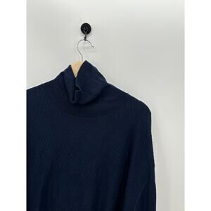 Linea Uomo Men Navy Blue Cowl Neck Sweater Wool Acrylic Nylon Blend Knit Pullover