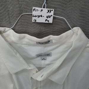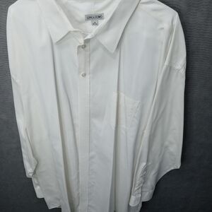 White long sleeve dress shirt button 100% cotton. Pit-p 33". Length 40". 16pm