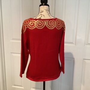 Linea by Louis Dell’Olia Women Sweater, Size M, Color Red, Gold, Material Cotton, Acrylic, Decoration