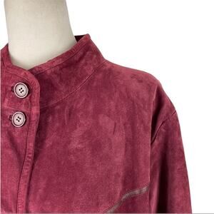 - Button up suede jacket has 2 side pockets