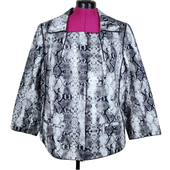 Linea by Louis Dell'Olio Blazer Grey Snakeskin Cotton Jacket Animal Print Sz 1X