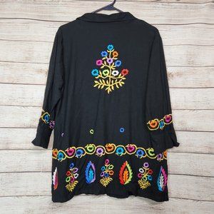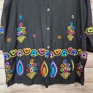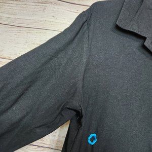 Linea by Louis Dell'Olio Embroidered Bohemian Womens Button Front Black Top L