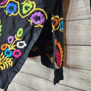 Linea by Louis Dell'Olio Embroidered Bohemian Womens Button Front Black Top Large?