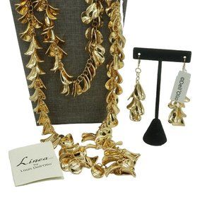 Stunning Linea by Louis Dell'Olio gold tone necklace and earring set. Signed.