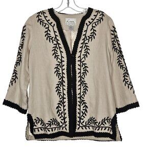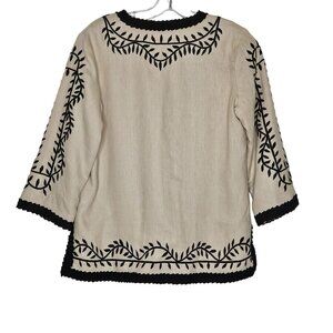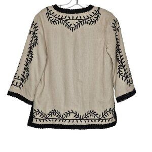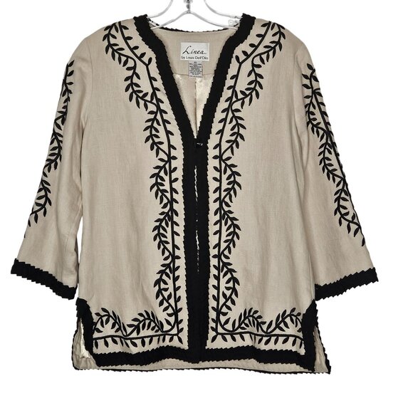 Linea by Louis Dell'Olio Jacket Womens XS Beige Linen Embroidered Artsy Boho