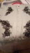 This elegant button down shirt features a pale mint green color adorned with striking black lace-like appliqué that creates a floral-inspired design. The symmetrical pattern extends from the shoulders down the front, adding a touch of sophistication to your outfit.