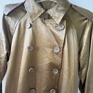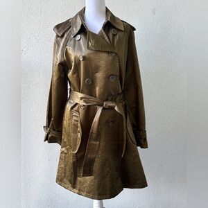 Linea by Louis Dell’Olio Olive Green Shiny Double Breasted Trench Coat Size S