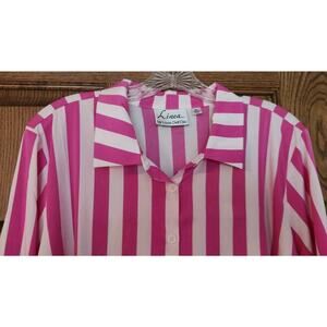 Linea by Louis Dell'Olio Pink & White Striped Button-Up Blouse Sz XL