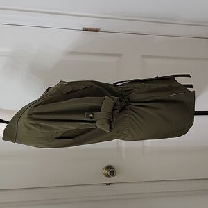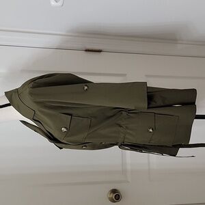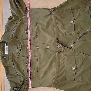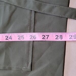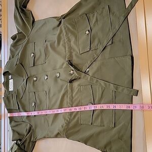 Linea by Louis Dell'Olio Size M Dark Olive Green Safari Shirt with Belt. Excellent Condition, No Holes, Rips, Stains or Snags. 4 Button Pockets, Button Down Front, Gathered Drawstring Waist. Please refer to measurements in photos to ensure proper fit.