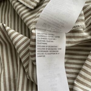 Elevate your casual wardrobe with this beautiful Linea by Louis Dell'Olio blouse. The tan striped pattern and colorful embroidered flowers make it a standout piece. The blouse features a button-down neckline and closure, as well as long sleeves with button cuffs. It has a relaxed fit and is made from a comfortable cotton blend with spandex for added stretch.