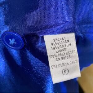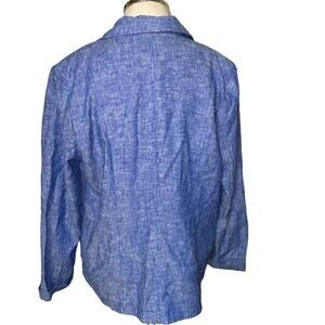 Linea by Louis Dell'Olio Vintage Chambray Denim Lightweight Blazer one button size Medium with two front slanted pockets and one extra button. Chest 23", length 25", 51% Linen, 49% Rayon, lining 100% polyester.