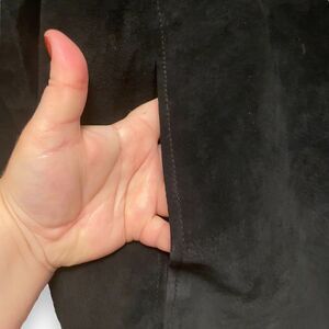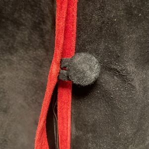 This gorgeous vintage suede jacket is in excellent condition. It has toggle buttons and pockets in the front. It is black suede with red floral suede appliqué inserts and red suede trim. It’s prefect for any Renfest! This jacket is totally Fairycore!