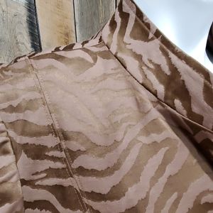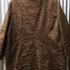 Beautiful medium brown jacket. Front pockets. Mandarin collar. Fully lined.Two tone brown animal print. Bin A B