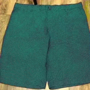 Linea upmo men's size 40 blue and white polka dot deck shorts. blue and white polka dots. button zipper fly. functional belt loops. size 40. 95% cotton 5% spandex. machine washable no bleach tumble dry gentle cycle. for best results you can also dry clean. made in China. style number 115174. front pockets and back pockets. excellent condition coming from a smoke-free pet free home no stains no ribs no tears warm one time