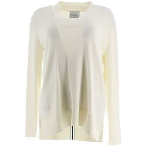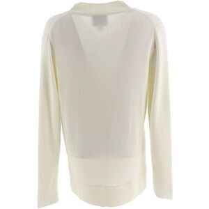 Features: V-neckline, long sleeves, overlap neckband, self-knitted band detail at hem, side slits