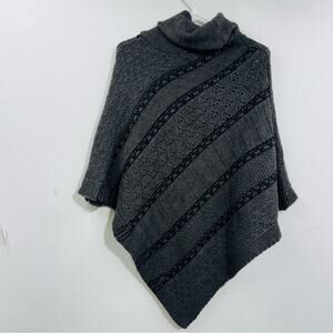 Lineamaglia Womens Sweater Poncho Gray Cable Knit Wool Blend Cowl Neck Pullover