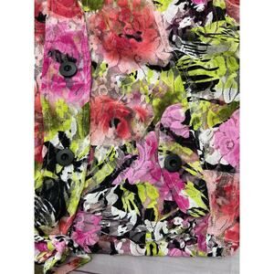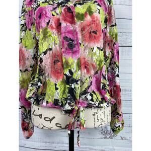 Linear Button Front Lace Shirt Womens M Floral Tie Front Roll Tab Nylon Stretch