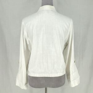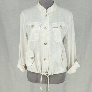 Linear Jacket Womens Medium Ivory Metallic Linen Safari Cargo Drawstring Career