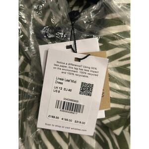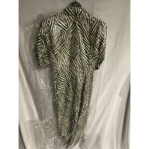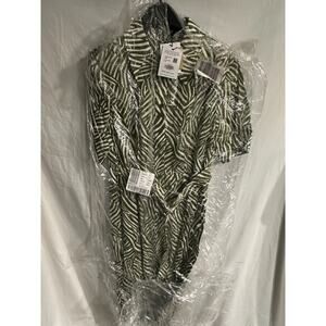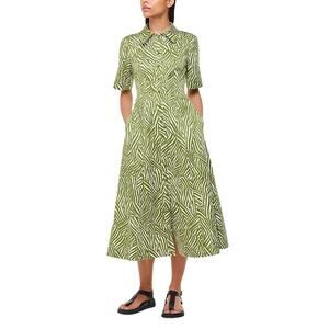 Whistles Green Linear Leaf Midi Dress Women's 8 Short Sleeve Button Front NWT