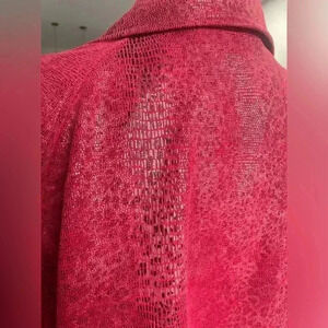 Beautiful color! Size 2X but can also fit a size M. Meant to have a loose fit.