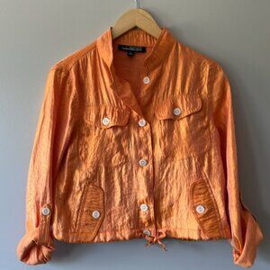 Linear Shiny Orange Utility Jacket with Drawstring Waist and Cuffed Sleeves
