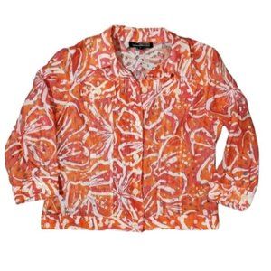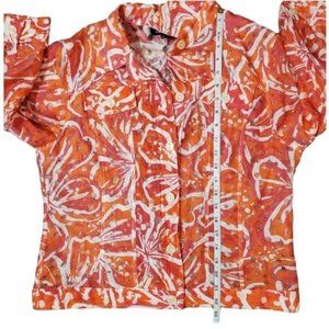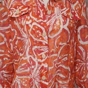 Linear Tropical Print Top Button Down Long Sleeve Sheer Blazer Size Md