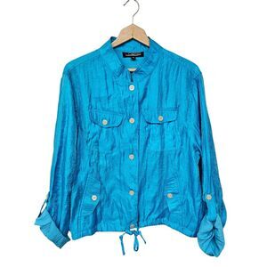 Linear Womens Jacket Size 2XShiny Metallic Roll Tab Sleeve Lightweight Bomber