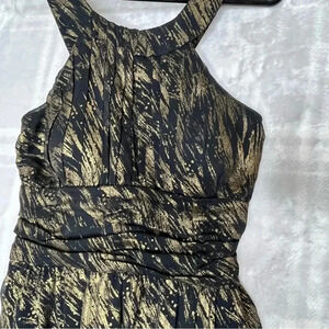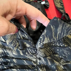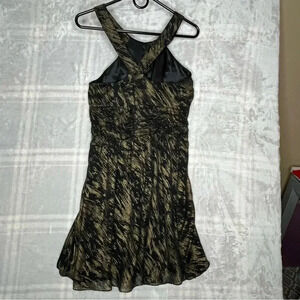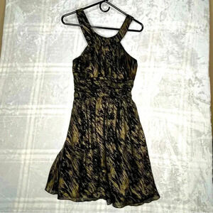 Lined Metallic Pleated Bust Criss Cross Back A-Line Mini Holiday Party Dress 8