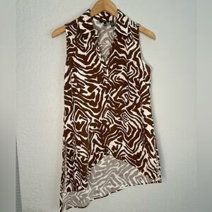 Ellen Tracy Linen Animal Print Sleeveless Top Tunic