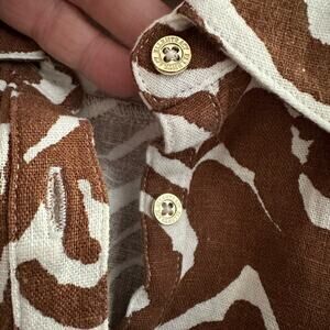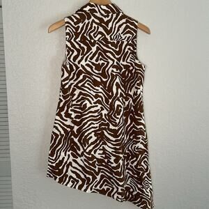Linen Animal Print Top Tunic Brown White Zebra Asymmetric Tribal Vacation Aztec